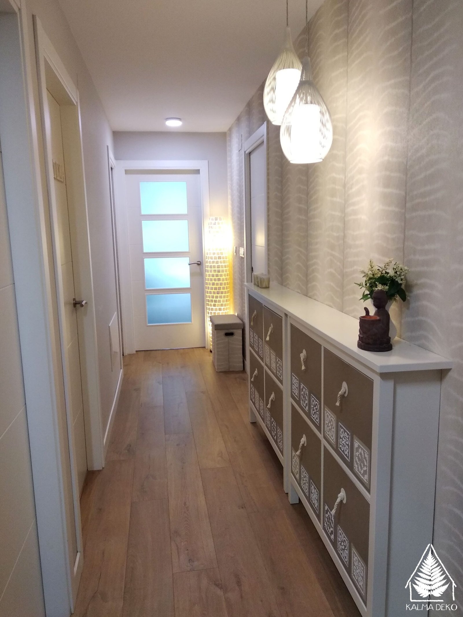 Este pasillo es el espacio que nos da la bienvenida a mi y a mí familia cada vez que volvemos a casa. Te lo comparto, porque es un ejemplo y reflejo de lo que considero valioso en KALMA DEKO. Es lo que te propongo para tu casa y es lo que aplico en la mía.