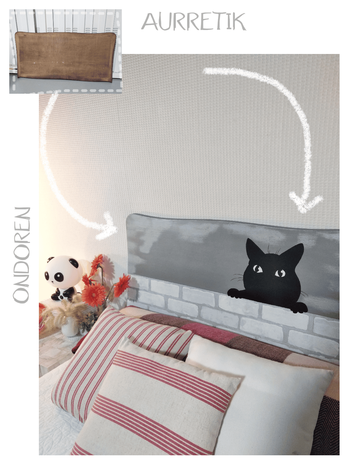 COMPAÑÍA GATUNA. Este cabezal, junto con su pareja, son hoy día las dos piezas que conforman el lateral de la cama barco de la habitación de mi hija Katixa...