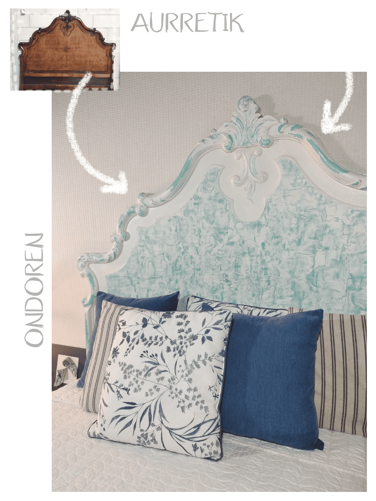 Cuando queremos crear un oasis fresco y actual para el descanso, elegimos tonos ligeros y limpios. Aprovechando que había que pintarlo, optamos por un craquelado grueso que va a cubrirnos las imperfecciones de la superficie de la pieza central, el decapado en los torneados laterales enmarcan el cabezal y lo dotan de un tranquilo carácter. Ahora y en el futuro este nuevo cabezal, es y será la pieza protagonista de una cama sobre la que gire el diseño de un refugio apacible y que invite a «parar».